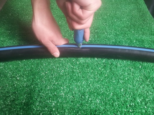 注:在打孔的时候,可能会将残余的PE管壁留在管材内部,因此首次通水灌溉时,需要将管材末端的打开,将PE管壁排出,防止堵塞灌水器。
