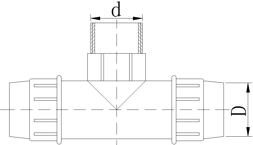 其中“ΦD”表示管件主管口公称内径,“Φd”表示管件支管口丝口直径,1.0MPa=10公斤