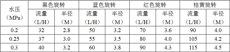 注:D2002旋转喷头型号根据喷嘴的颜色进行区分。